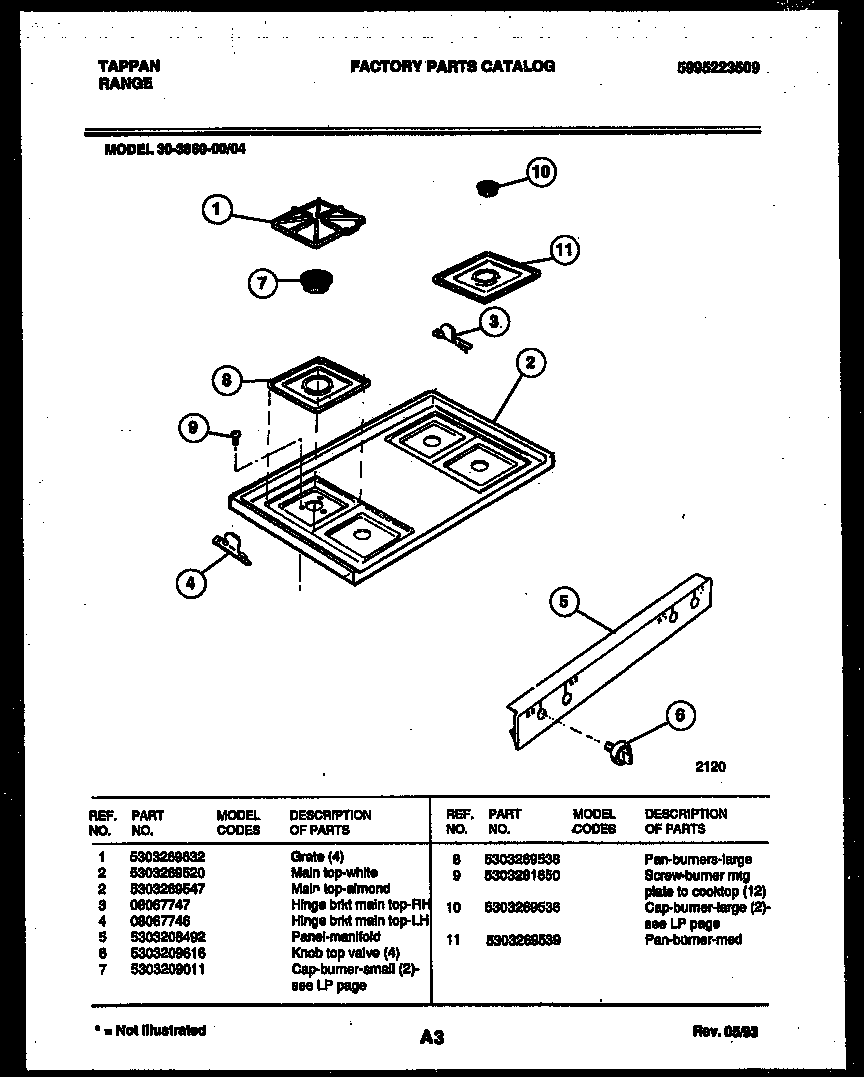 Tappan Range - Gas 3038602304 Timer RepairWhat is the timer/clock part number for the Tappan 3038602304 Range - Gas?![]() The 3038602304 Range - Gas uses timer part number 5303269413. Do you have a failed Tappan 3038602304 control panel? Click here: We can repair or replace your faulty Tappan 3038602304 timer. 3038602304 are also sometimes referred to using these Alternative Names/Model numbersElectrolux 3038602304 Range - Gas, 5995221719 3038602304 Schematic and Wiring Diagrams |