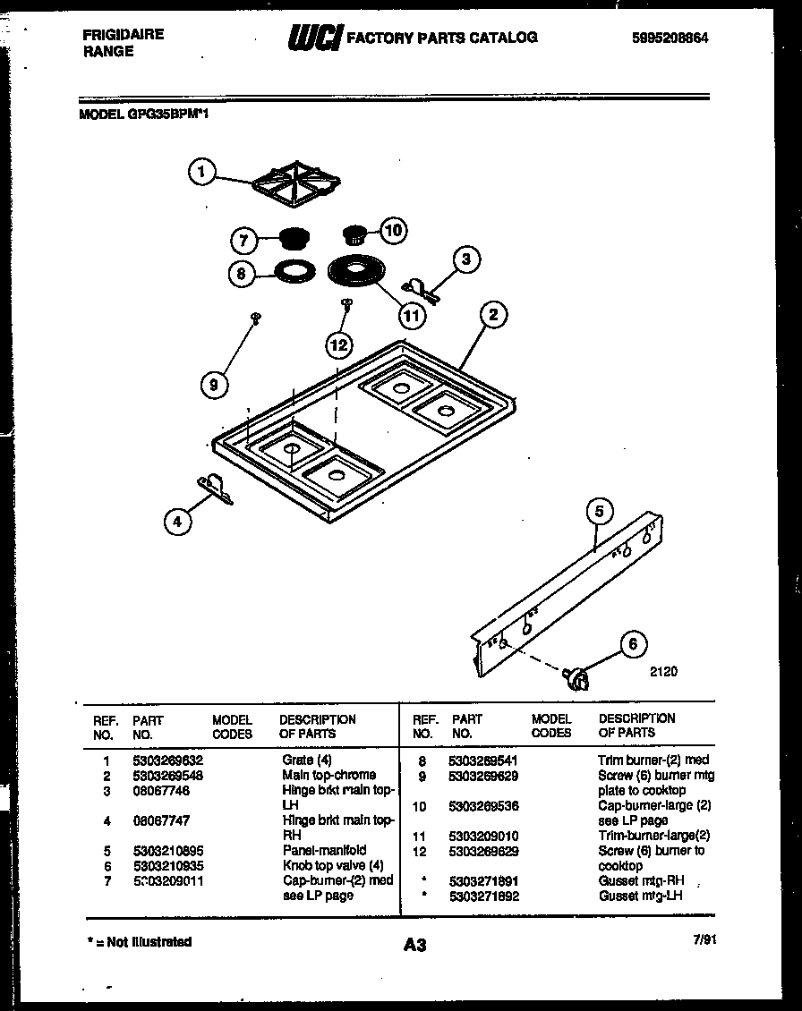 GPG35BPMX1 Range - Gas Cover Parts diagram