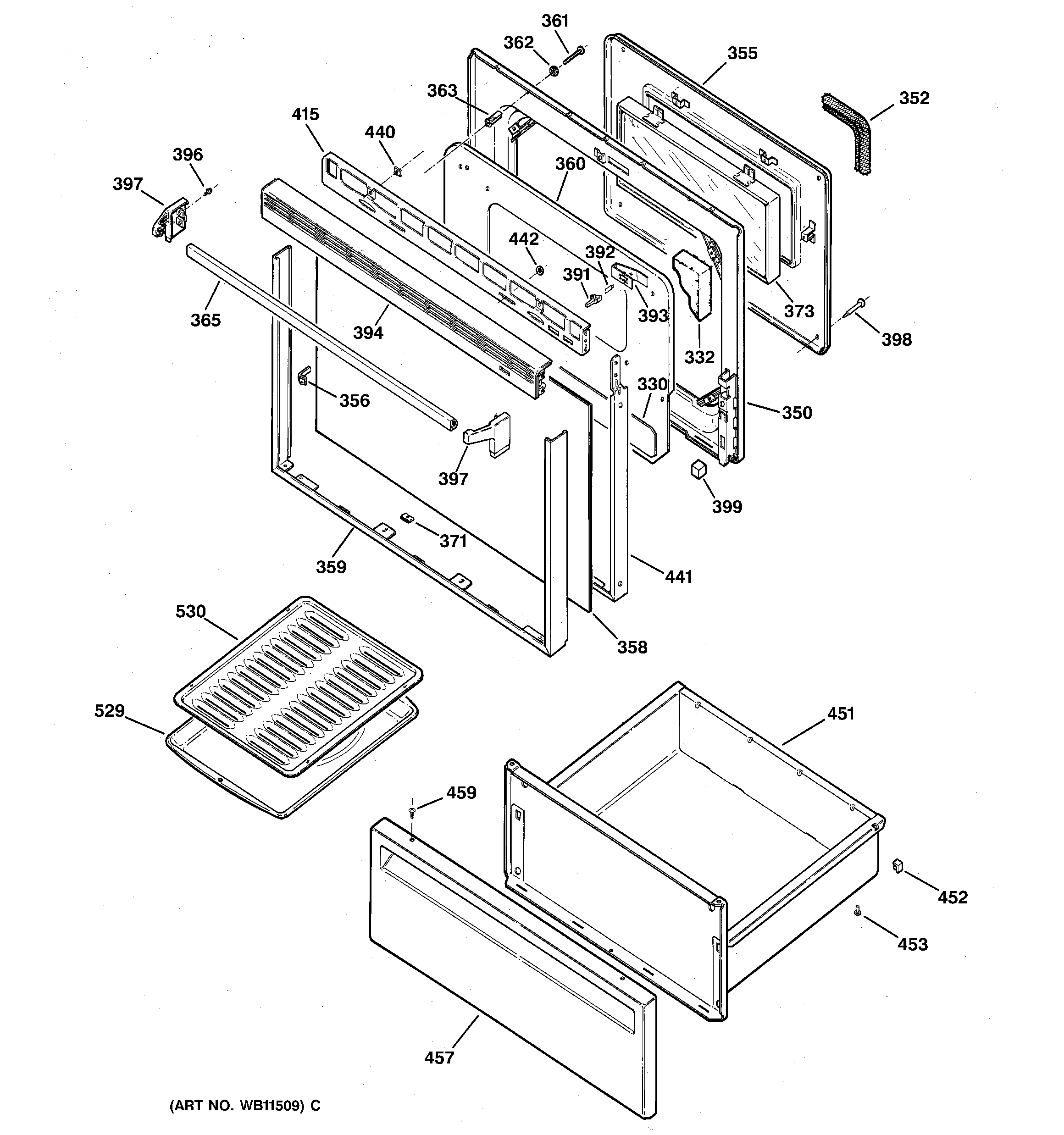 JBP56GR1 Electric Range Door & drawer Parts diagram