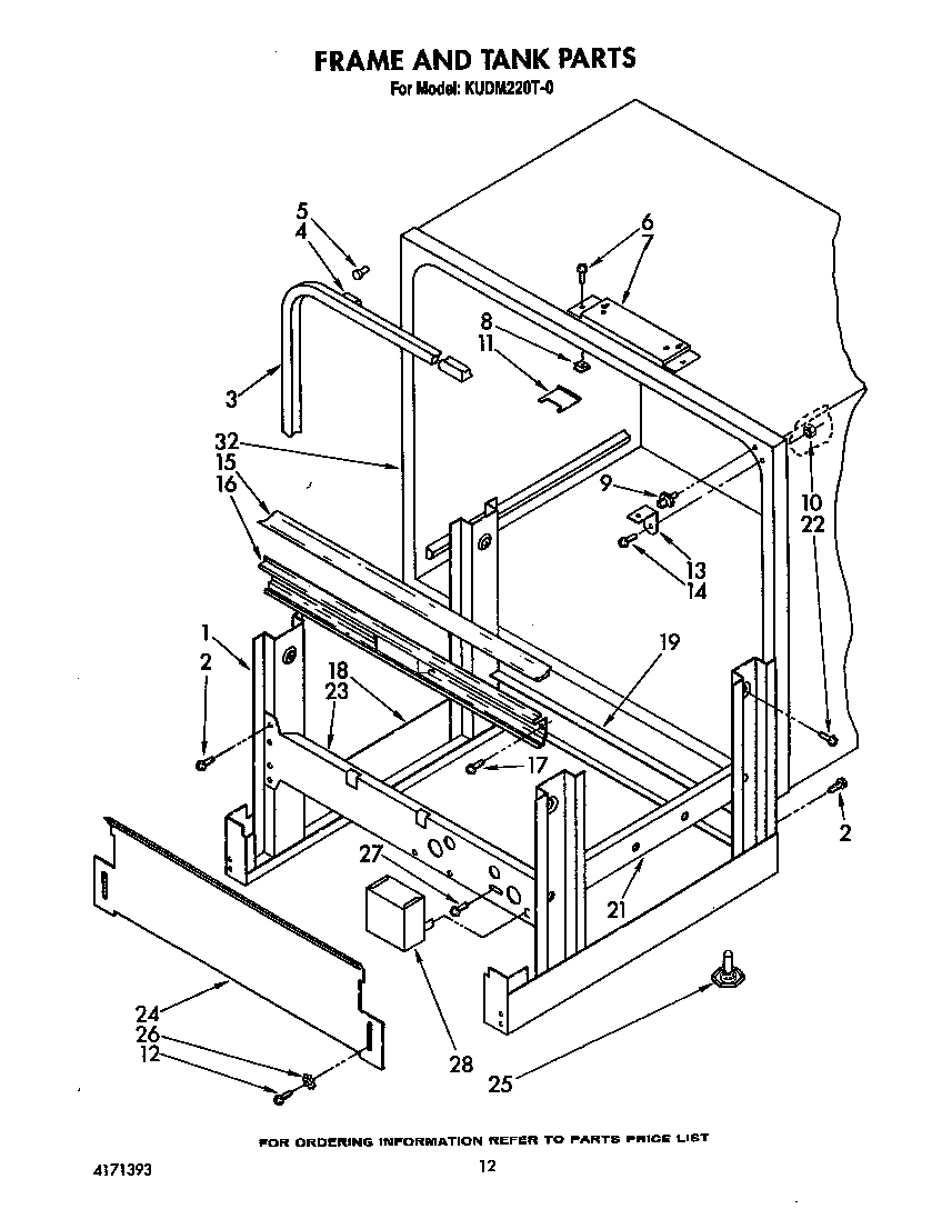 KUDM220T0 Dishwasher Frame and tank Parts diagram