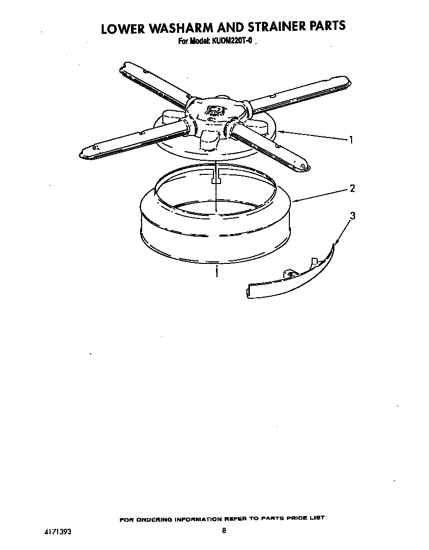 KUDM220T0 Dishwasher Lower washarm and strainer Parts diagram